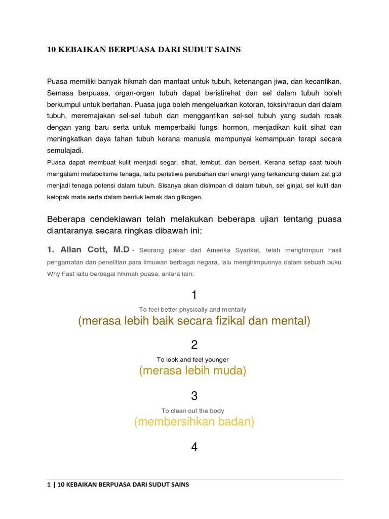Allan Cott MD Seorang pakar dari Amerika Syarikat telah. Puasa memiliki banyak hikmah dan manfaat untuk tubuh ketenangan jiwa dan kecantikan. Kelebihan Puasa Dari Sudut Sains.
